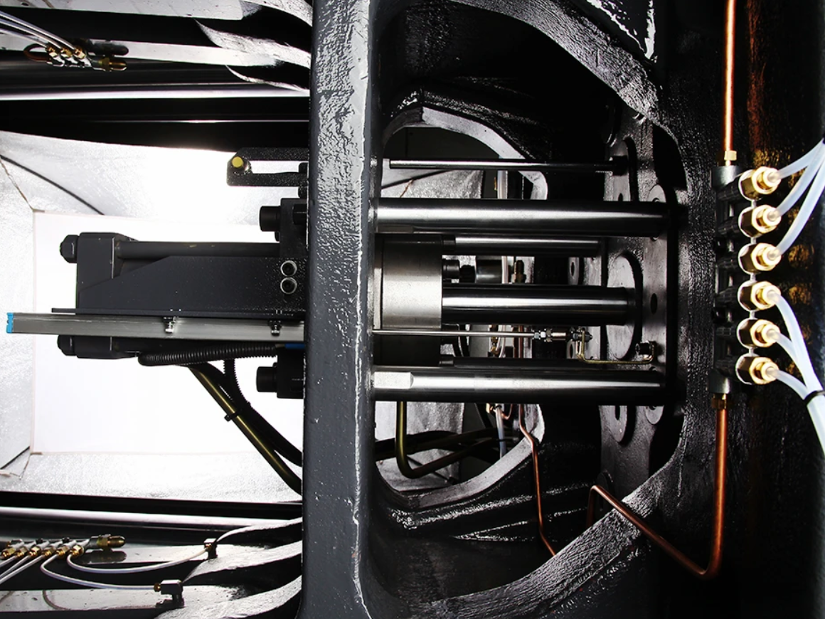 Толстая конструкция шаблона высокой жесткости, уменьшает тонкостенную деформацию литья под давлением; оптимизация пятиточечного зажимного механизма коленчатого стержня, шаблона, равномерной силы, плавного и быстрого движения. Вал замка и направляющая тяги оснащены высокопрочным, устойчивым к давлению, износостойким самосмазывающимся подшипником для уменьшения ударов и увеличения срока службы. Удлините направляющий механизм шаблона, чтобы шаблон перемещался плавно, чтобы повысить точность позиционирования открытой матрицы, чтобы манипулятор можно было легко поднять. Использование объемного количественного распределения тонкой масляной смазки, оптимизация распределения смазки, сокращение использования смазочного масла. Тяга и стопорный вал изготовлены из высококачественной легированной стали и предназначены для продления срока службы машины.